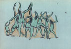 Abban a pillanatban, mikor a többi katona meglátta, hogy ez az álarc-parókás és Fragonard-gatyás katona hóna alá fogta az öreg parasztot, a sor fölbomlott. Mintha se tisztek, se generálisok soha a világon se lettek volna, elkezdtek ugrálni, szaladtak lefelé a lépcsőn, letérdeltek a halott mellé, odatették szépen sorba a kezüket a kordén zörgő ravatal széléhez: azok a részeg bakancsosok, akik előbb még éhes disznók módjára zabáltak, aztán lökdösték egymást a körhintánál vagy az örömlányok gardróbjában, most olyan gyermekes tisztelettel álltak sorba és rendbe a halott-érintésnél, mint a jól idomított zárdalányok a szenteltvíztartónál. Utána karonfogták az öregeket és fiatalokat, a siratónőket (akik már rég nem bőgtek kis taksájukért, de most, hogy ezek a bergsteiger-harlekinek angyali udvariassággal karonfogták őket, kötelességüknek érezték, hogy újra nyivákoljanak és el is kezdtek valami se-füle-se-farka Hádesz-zsolozsmát); mindegyiket szépen fölkísérték a kaszárnya-udvarra, a ravatalt leemelték a taligáról és ketten vitték fel a lépcsőn. Előbb még olyan részegek voltak, hogy a 8-ast is 888-nak járták, de most egyszerre olyan egyenesen és néma biztonsággal lépkedtek, mint a balerinák vagy a kötéltáncosok.