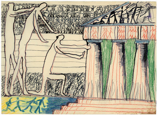És ezzel megint az ő külön bejáratú valóságainak határán vagyunk, egészen közel az expresszionizmushoz, ahogyan azt ő definiálta. A Creta Polycolor, színes kréta-doboz által ihletett művet bizonyára ebben a birodalomban álmodta meg.