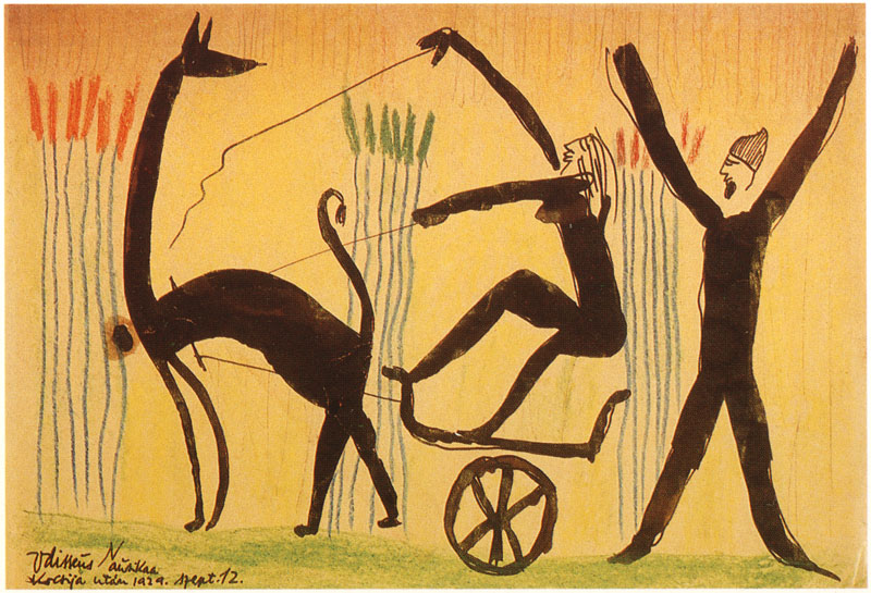 Nagyon jellemző rá egy metafora, amit szeretett emlegetni: göröngyös talajon nem, csakis sima parketten lehet bolond táncot járni! - gondolati, érzelmi és művészeti világának talán ez a legérthetőbb képlete. Ez egybevág irodalmi stílusával, de rajzaival is. hagyományos motívumok alapján teremt gyakran deformált képzelet-palotákat. Néha ijesztő fantáziájával, majdnem spontán, képes deformálni a valóságot. Ezt a bolond táncot, a gravitáció nélkül lebegő, forgó alakok sorát végig követhetjük rajzain.