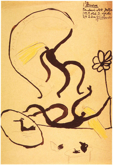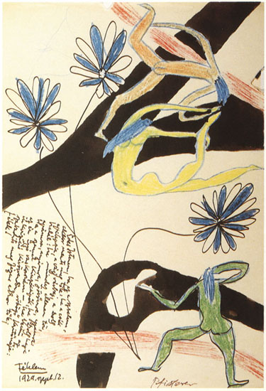 Állandóan ingajáratban volt a valóságos és a képzeletbeli között. Ez a kettősség egy rá jellemző vonással jelenik meg rajzain. Előbb már szó volt a gravitáció nélkül lebegő figurákról. Légüres térben táncolnak és sokan vannak, folyton előjönnek, repkednek a vonzás nélküli űrben. „Milyen mindennapi téma, milyen titokzatos realitás a valóság és a képzelet[…] A kép csupa nem-létezőt ábrázol: nem csodálatos-e az embernek ez a quasi «mindennapi» vonzalma a nem-mindennapihoz, a nem-létezőhöz? Van két véglet: az abszolútan megszokott realitás és az abszolút idegen csoda.[…] Mennyire megszoktuk, hogy a nagy festészet a nem-létezést ábrázolja, milyen reális ismerősünk az irrealitás. […]